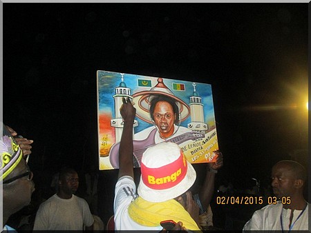 Les policiers de Darel Barka appuyés par les éléments du commissariat de police de Boghé venus en renfort avec aussi les éléments de la marine nationale ont éprouvé beaucoup de difficultés pour contenir la masse et assurer la sécurité de l’artiste. Poignée de main avec le maire de la commune de Darel Barka que nous n’avons pas réussi malheureusement à immortaliser pour vous car nous avons été à ce moment bousculé sauvagement par un brigadier de police du commissariat de Drel Braka. Comme il l’avait fait au débarcadère, l’artiste se tient débout dans la voiture décapotable qui le transportait pour saluer la foule qui scandait sans cesse "Baba", "Baba", "Baba", "Avec Baba jusqu’à la mort".