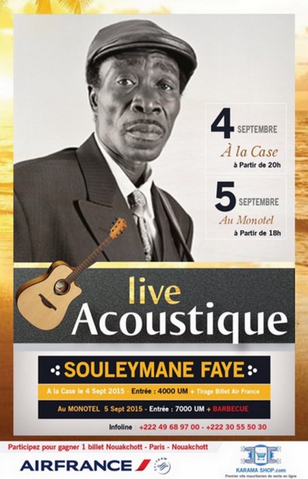 Virtuose de la guitare, compositeur et voix unique, il fait depuis longtemps partie des monstres sacrés de la musique sénégalaise. Aussi, quand ce monument vivant vient à Nouakchott, c’est toujours un événement pour ses fans et pour les mélomanes en général. Né en 1950, Souleymane est considéré comme l’un des plus grands paroliers sénégalais.