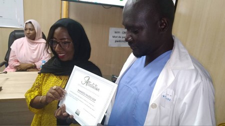 Les activités de ce 14 novembre 2021 ont été bouclées par une remise d’attestation de reconnaissance au personnel de santé ayant rendu de loyaux services à SOS Diabète et aux malades du diabète.