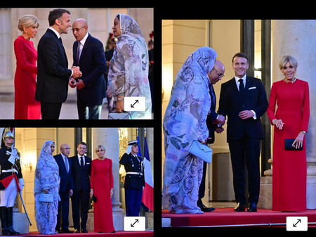 16-04-2026 11:26 - Parure dorée et robe de bal rouge, Brigitte Macron sur son 31 pour accueillir le couple présidentiel mauritanien